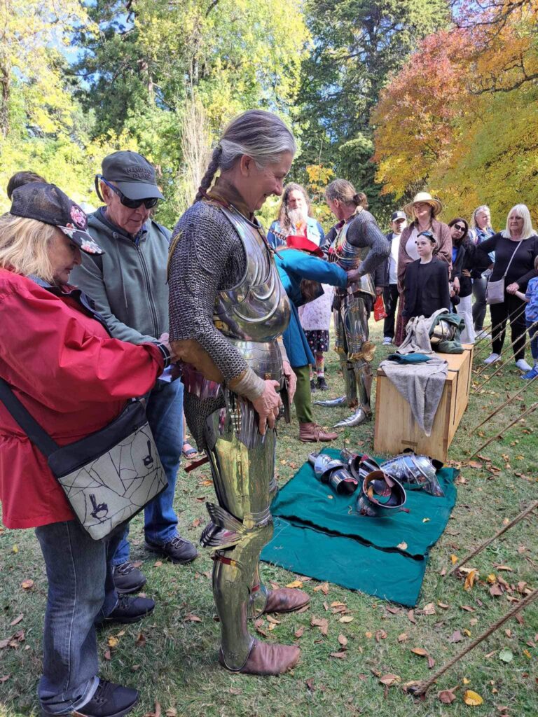 This is one of the most popular and informative displays. It shows our knights getting armoured from the undergarments up. Some pictures from recent displays can be seen on our armour page.