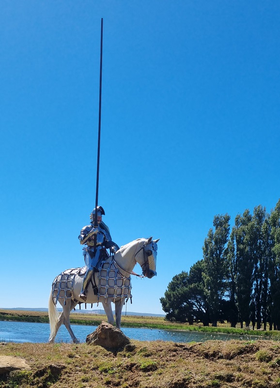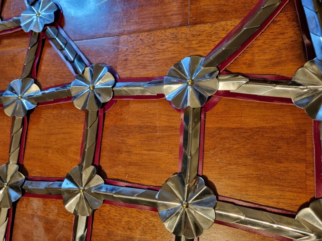 This set that was made for Phoebus is leather covered with steel rondels and scales. It is an interpretation of the remains of a set of barding that is exhibited alongside the war saddle from Bucharest in the Muzeul Militar National.