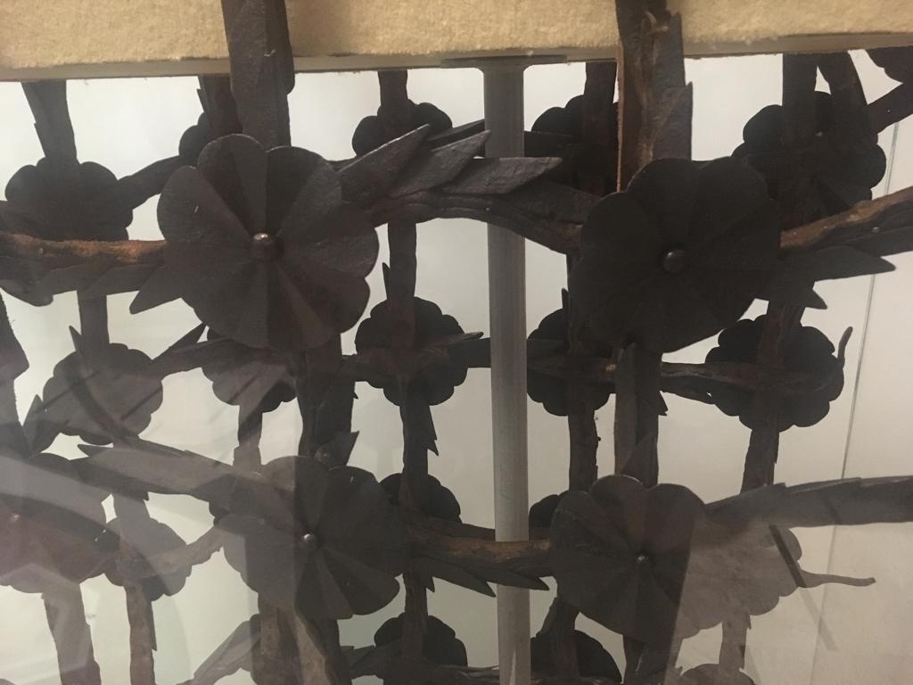 The third shamfron is made from cuir bouilli (hardenend leather). It is based on the only known surviving leather one but the form was taken from an image depicting the travels of John Mandeville from Prague.